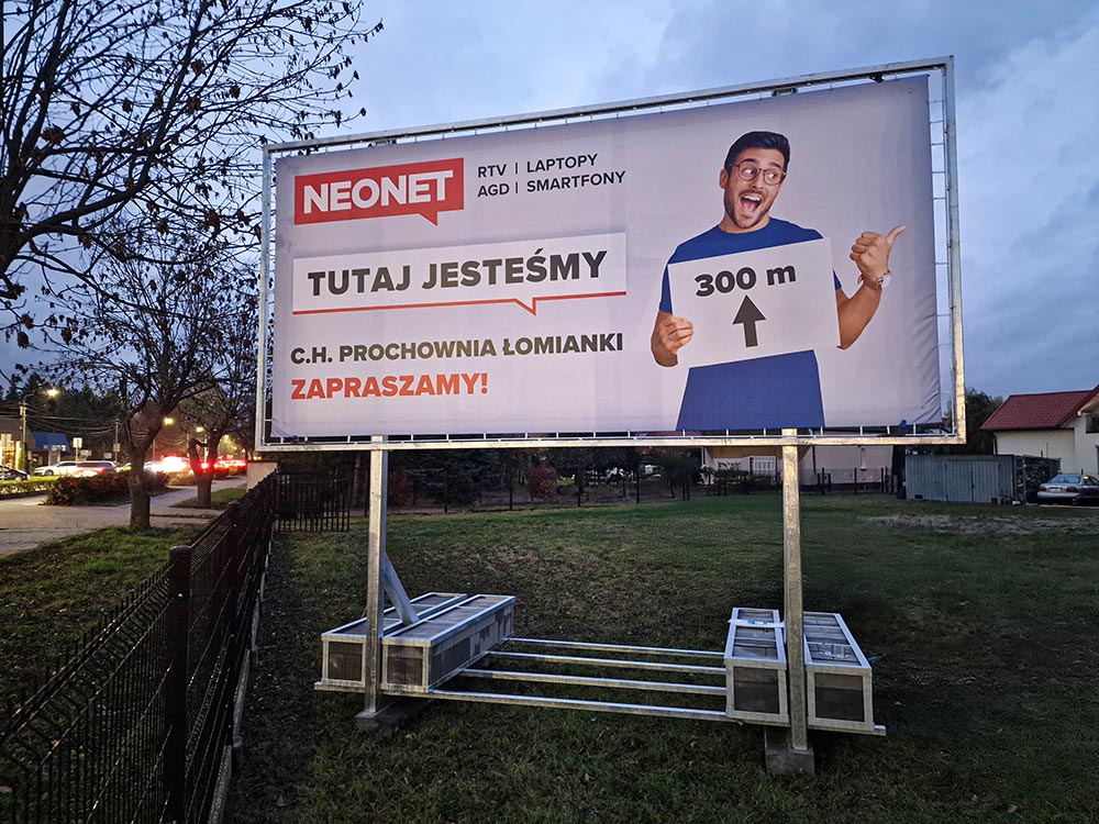 Billboard reklamowy to sprawdzona forma reklamy zewnętrznej o powierzchni reklamowej do 18 m². Działa prosto. Skuteczny billboard reklamowy codziennie dociera do odbiorców w miejscach o dużym natężeniu ruchu. Powtarzalność kontaktu utrwala komunikat, zwiększając rozpoznawalność firmy. Bilbordy reklamowe są widoczne 24/7.