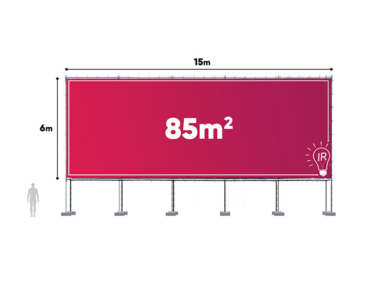 Ta konstrukcja jest świetnym rozwiązaniem do kampanii reklamowych, które mają trafiać zarówno do okolicznych mieszkańców, jak i podróżników z całej Polski. Jej wielkość 15 x 6 m sprawia, że może stanąć przy drodze gminnej, wojewódzkiej i krajowej, by skutecznie reklamować Twoje produkty lub usługi. Doskonała, gdy Twój przekaz to nie tylko kolory i obrazy, ale także treść. Na takim formacie nawet dłuższe hasła reklamowe są łatwe do przeczytania przy prędkościach do 90 km/h.