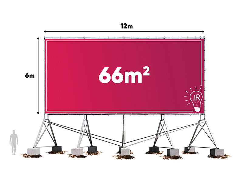 Reklama 12 x 6 m na trapezowych nogach 330 cm? To świetna przestrzeń dla rozmachu. Twojego rozmachu. Doskonale sprawdza się przy premierach produktowych, kampaniach wizerunkowych czy działaniach sieciowych marek. Może też służyć jako czasowa ekspozycja podczas wydarzeń, np. na terenach targowych lub strefach przemysłowych. Zdobądź koronę marketingu – pełną uwagę swojej grupy docelowej – w królewskim stylu!