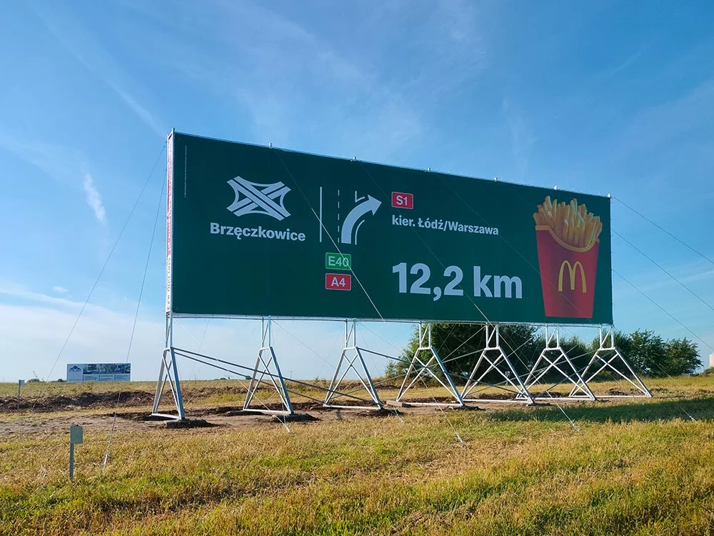 ✅ Konstrukcja reklamowa 18 x 6 m z nogami 330 cm – autostradowy odlot!